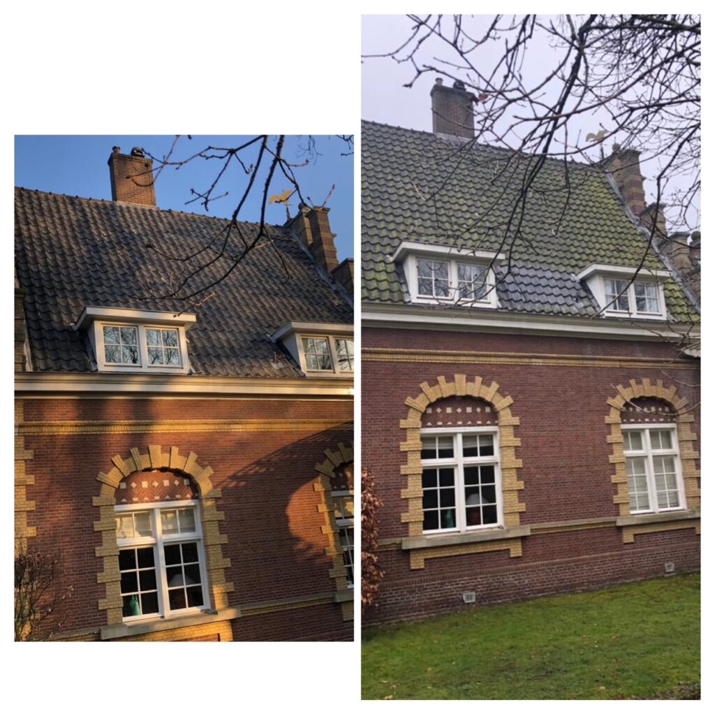 Het lagedruk reinigen van daken ( Softwashen ) gebruiken wij met oude kwetsbare delen wat met hogedruk beschadigd.